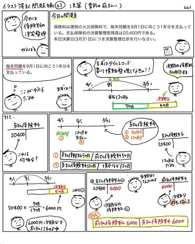 問題編は、日商簿記3級範囲の仕訳練習問題をお届けしています。 今回は、支払った保険料に次期分が含まれている場合の決算整理仕訳です。 問題63決算(費用の前払い)仕訳 仕訳解答 解き方解説 仕訳のポイント 問題63決算(費用の前払い)仕訳 保険料は建物…